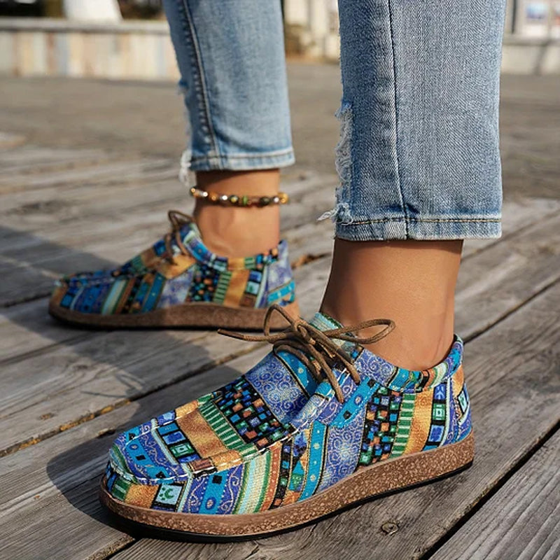 RETRO-INSPIRED DESIGN: Featuring a vibrant, colorful print, these loafers blend classic retro style with modern flair, adding a fun pop of color to any casual outfit.